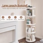 [Lightweight and Portable] Plastic rotating bookshelves are significantly lighter than those made of traditional materials like wood or metal, making them easy to move around and rearrange in your living space.
