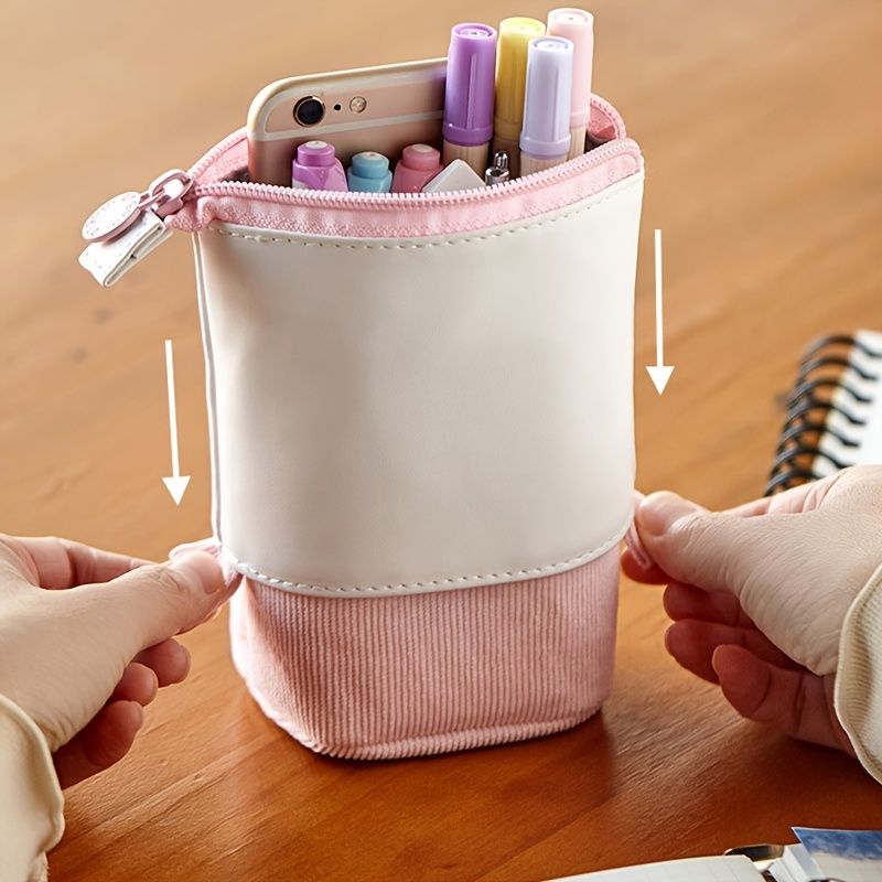 Pencil Telescopic Holder Stationery Case, PU Corduroy Pen Pencil Telescopic Holder Stationery Case Organizer Great For Makeup Cosmetics Pouch Zipper Retractable Pen Bag